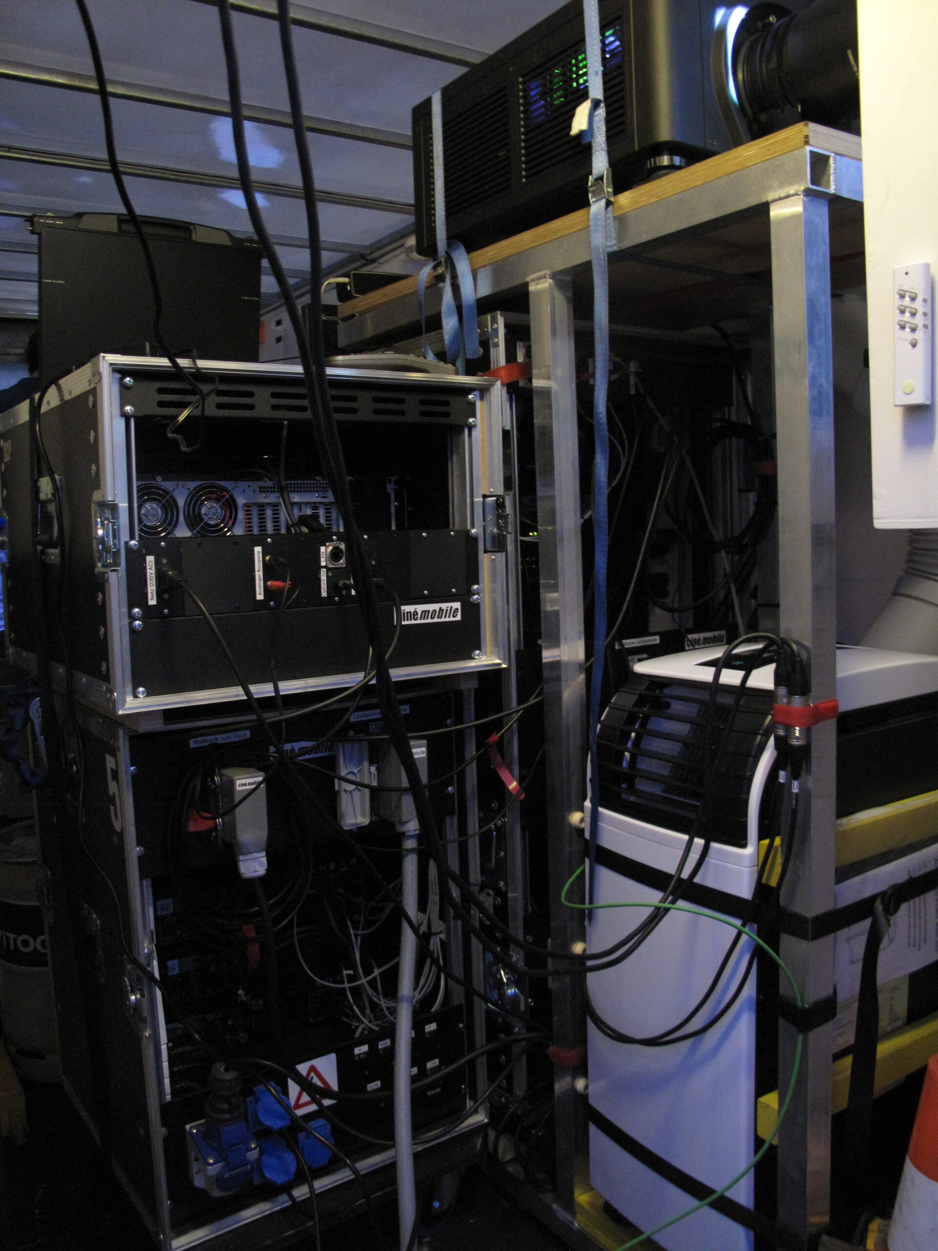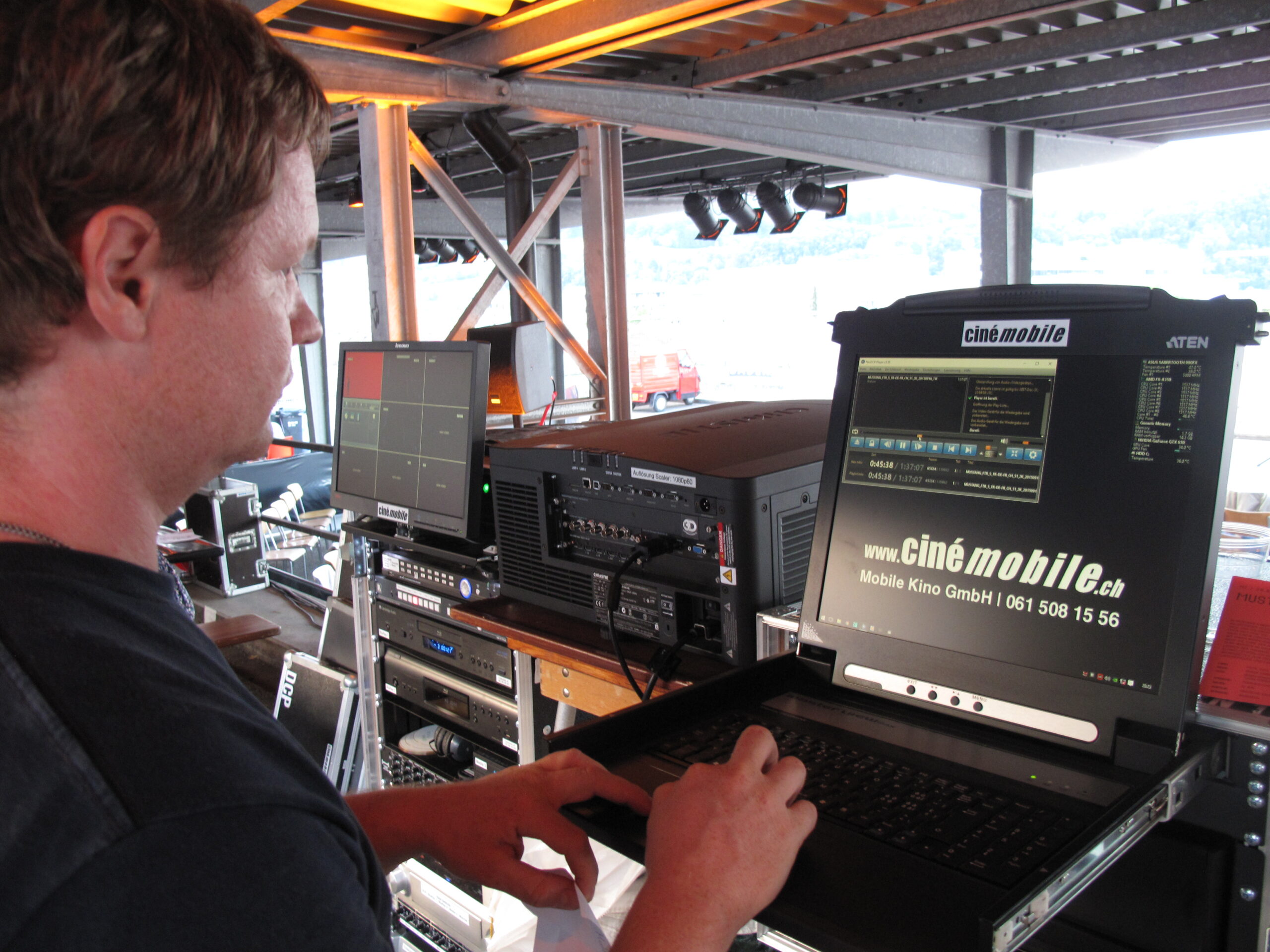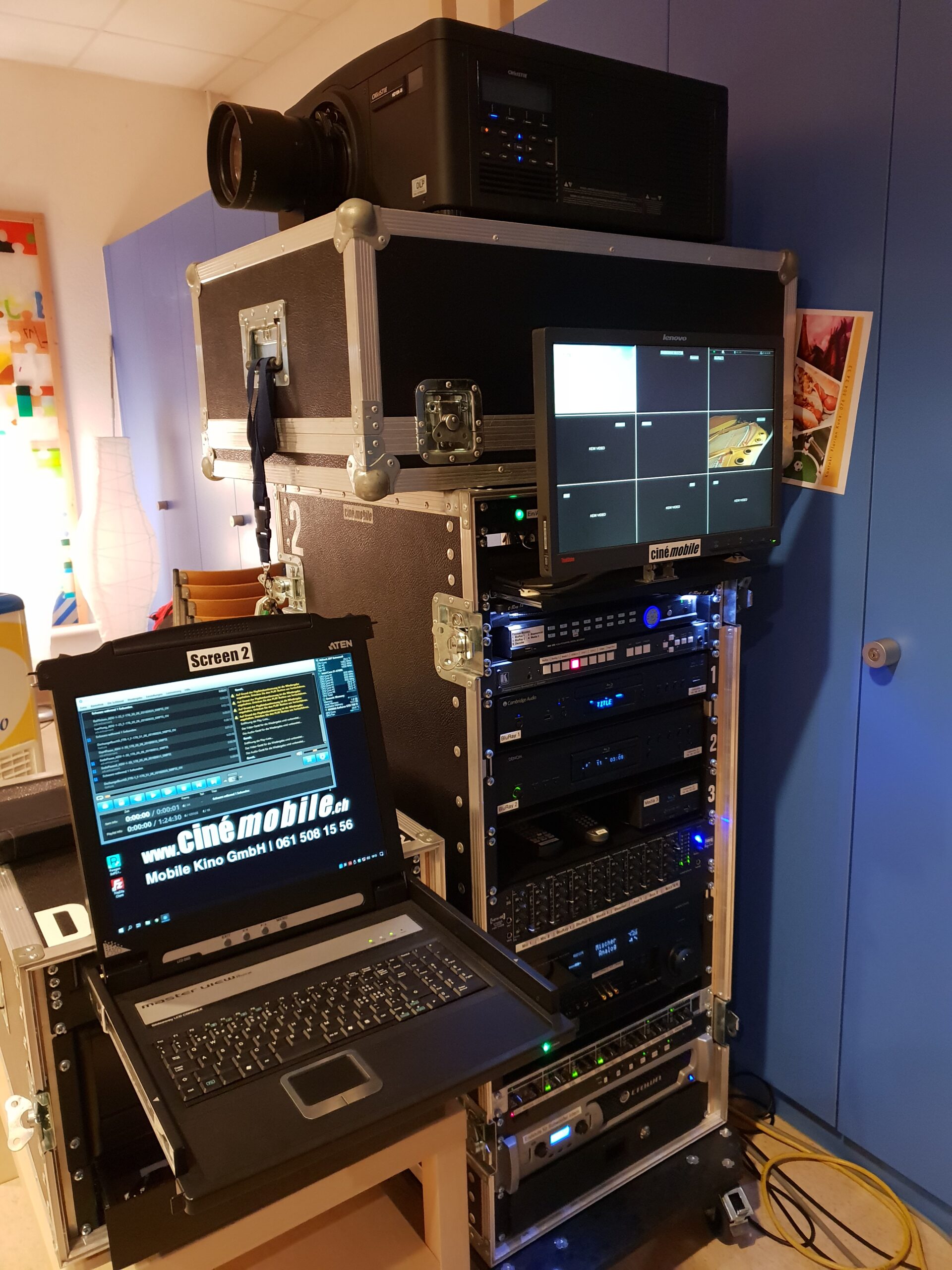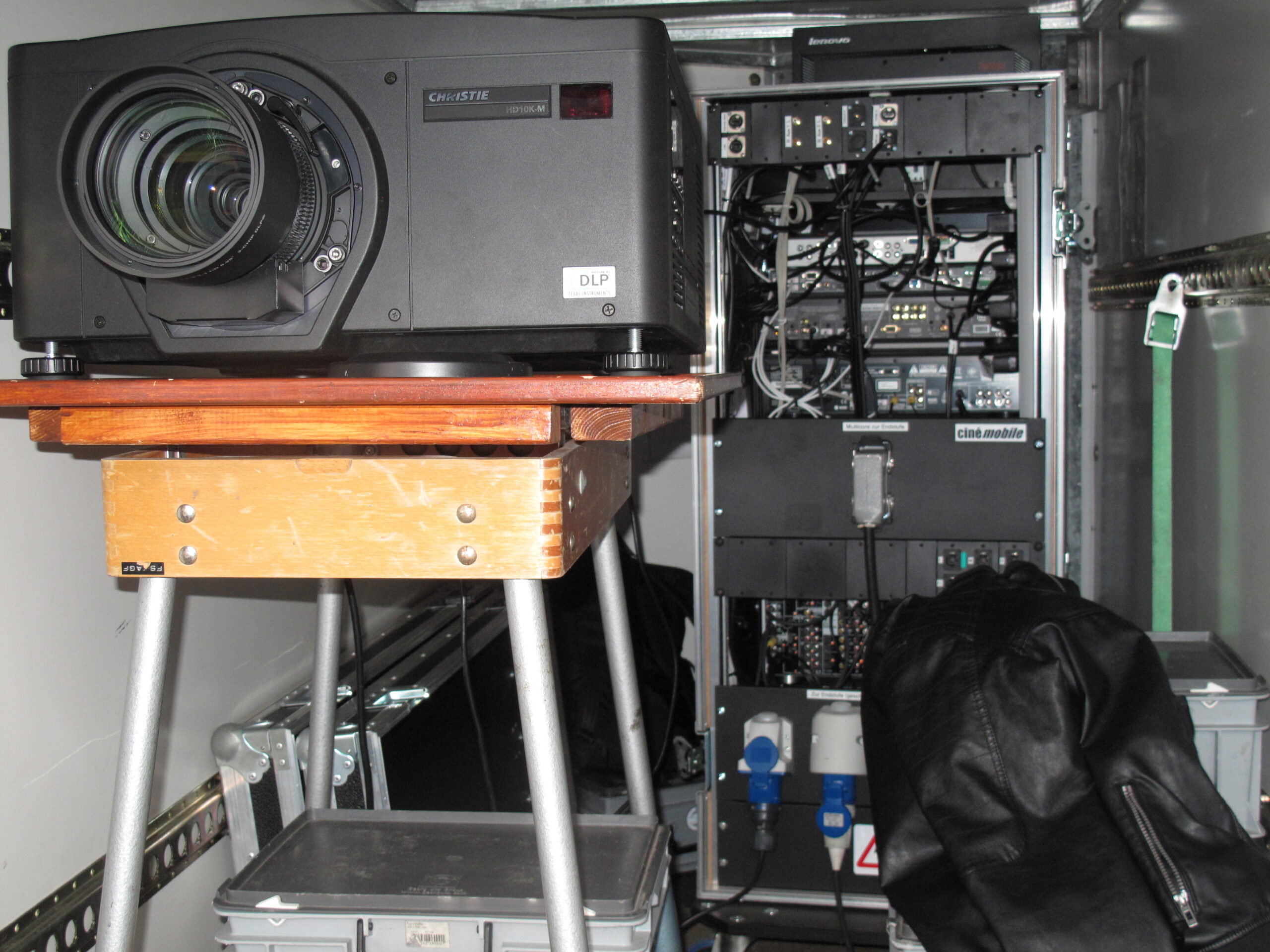 Projektion: Anstelle eines mechanischen Filmprojektors wird ein digitaler Kinoprojektor verwendet, der die Bilddaten auf die Leinwand projiziert.