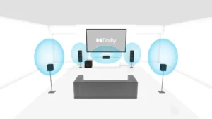In einem 5.1 Surround-Sound-System sind die Lautsprecher strategisch platziert, um den Zuschauer zu umgeben. Bei der Leinwand befinden sich der Center-Lautsprecher (für Dialoge) sowie die Front-Links- und Front-Rechts-Lautsprecher (für Hauptklänge). An den Seiten und der Rückwand sind Effekt-Lautsprecher für Umgebungsgeräusche angebracht. Ein oder mehrere Subwoofer im sorgen für tiefe Bässe.