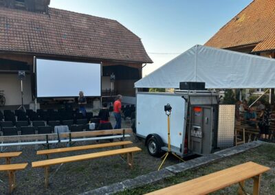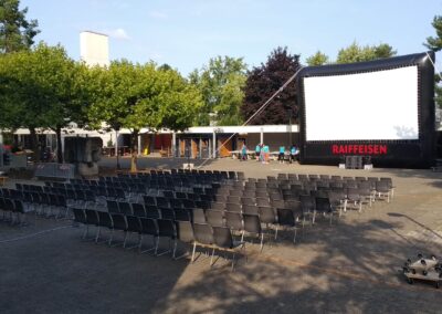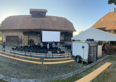 Entdecken Sie das einzigartige Erlebnis eines Openair-Kinos mit cinémobile. Geniessen Sie Filme unter den Sternen mit Freunden und Familie, während Sie in bequemen Sitzen entspannen und die frische Luft geniessen.