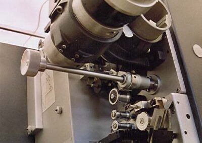 Tonspur: Bei Tonfilmen befindet sich die Tonspur in der Regel als optischer oder magnetischer Streifen auf dem Film selbst, der von einem Lesegerät im Projektor abgetastet wird.